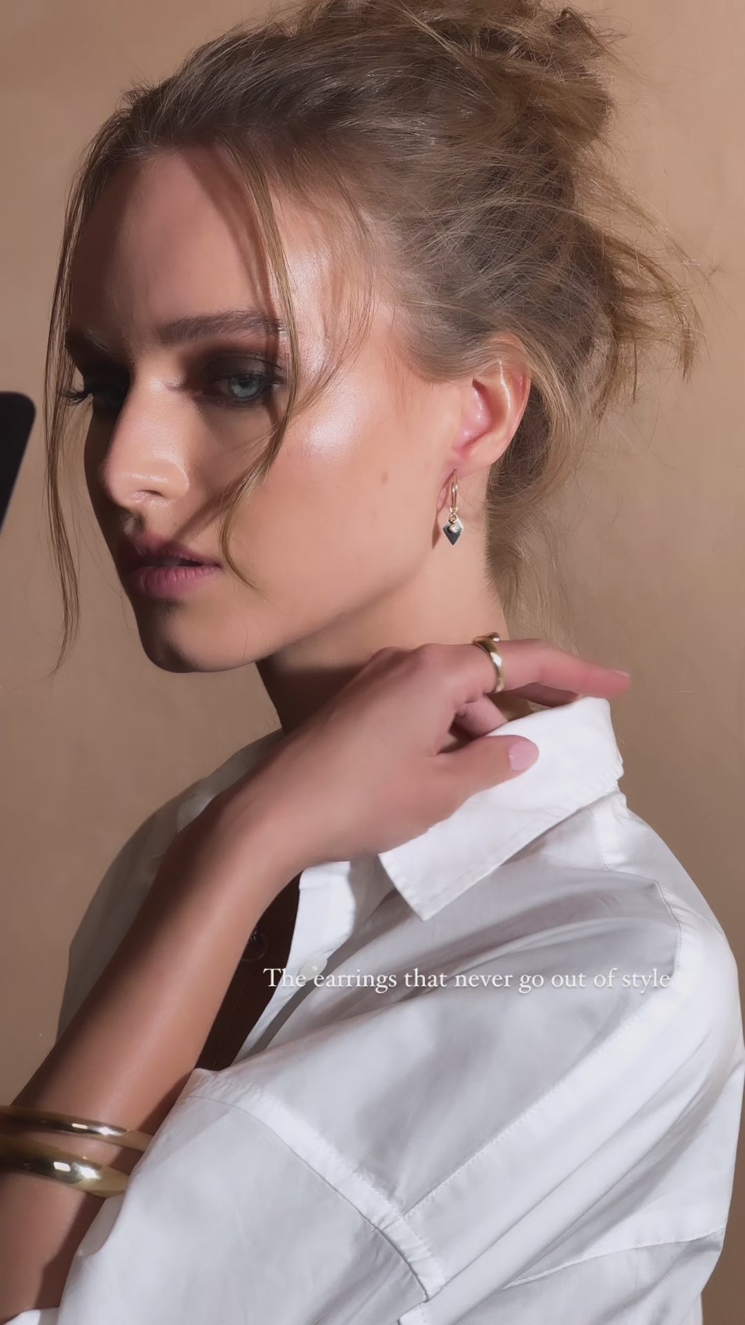 Model in picture wearing Medium Hoops (first earring)
